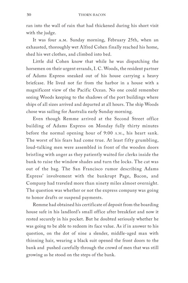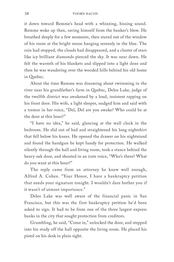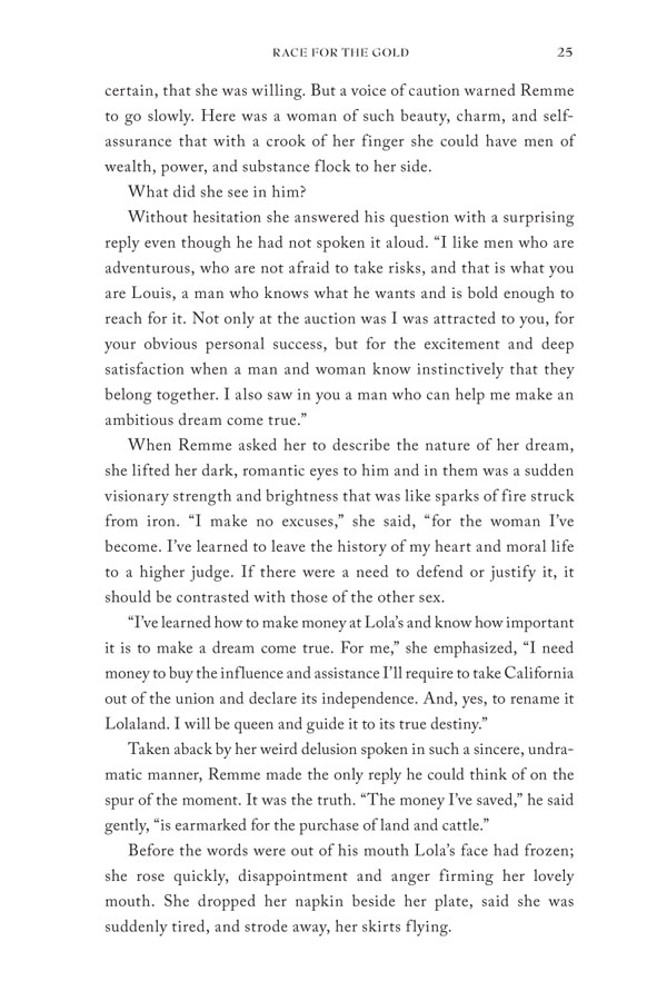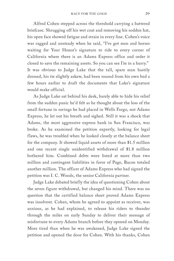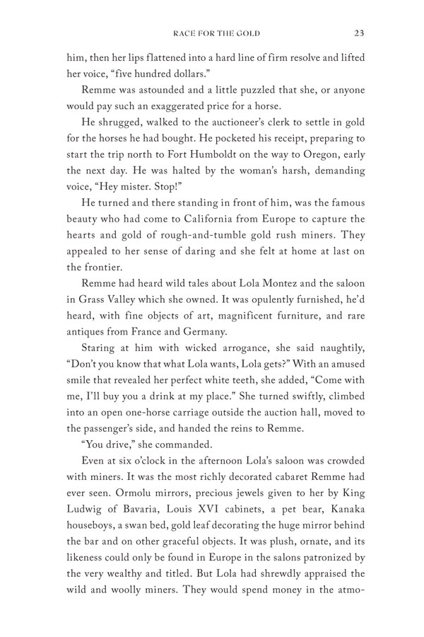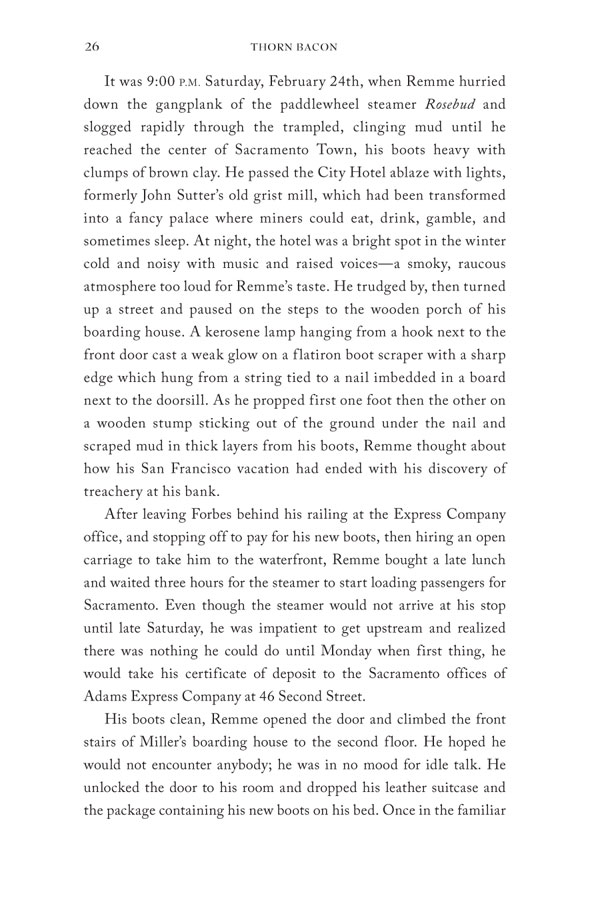 Race for the Gold is a novel based on the true story of Louis Remme, a French Canadian cattle trader living in Oregon. In February of 1855 Remme was a relatively rich man, having deposited $12,500 in gold from the sale of his latest herd into the San Francisco branch of the Adams Express Company Bank. The future seemed bright, until a series of bank collapses cascaded and wiped out the Adams Express, and with it all the money Remme had in the world. But fate dealt Remme one last chance to save his fortune: with no telegraph to warn them, the only way for news to reach the Oregon branch of Adams Express so that they would not hand out any more money to depositors was by steamboat. Will Remme, on horseback, get there before the ship and save his fortune?