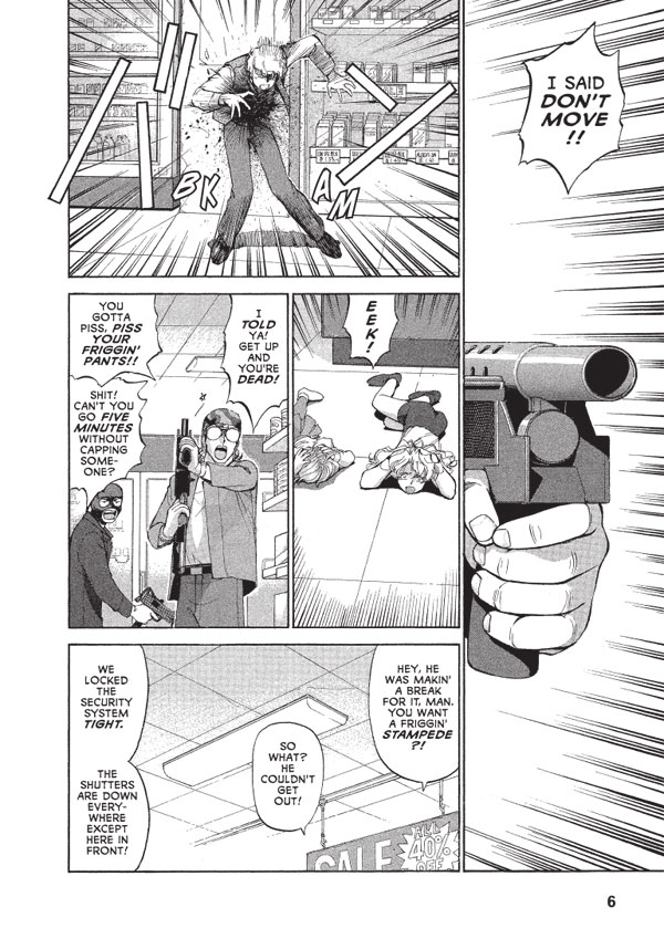 This fourth and final omnibus volume of the original Gunsmith Cats series is probably the single best GSC-related item available. Not only does it comprise the super-exciting "Mr. V" story line, with the usual gun-and-auto action and and special plot twist, but for extra punch, creator Kenichi Sonoda added a bunch of exclusive gag strips and a few issues of his left-to-right reading Riding Bean stories from way back in 1989. Also included are some "making of Riding Bean" comics and sketches and notes from the early days. See the beginnings of Sonoda's awesome Gunsmith Cats series!