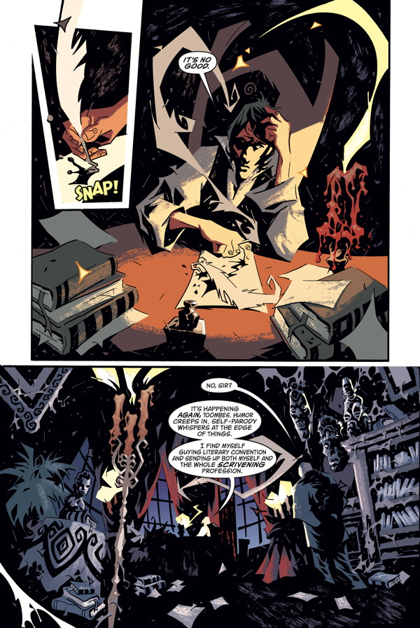 A celebrated send-up of gothic literature, beautifully adapted into a dark, brooding, and oddly comical graphic novel. Somewhere in the night, a raven caws, an author's pen scratches, and thunder claps. The author wants to write nonfiction: stories about frail women in white nightgowns, mysterious bumps in the night, and the undead rising to collect old debts. But he keeps getting interrupted by the everyday annoyances of talking ravens, duels to the death, and his sinister butler.