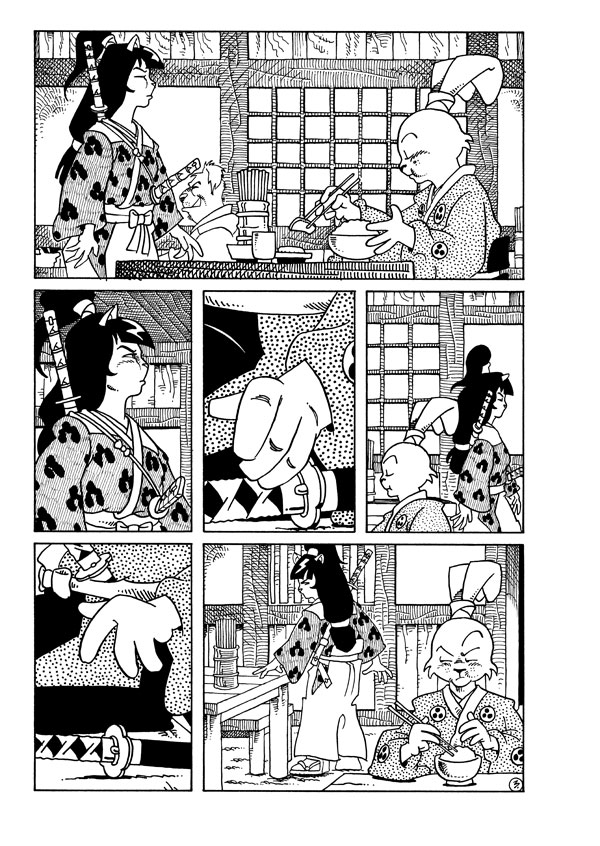 While journeying over mountains, into valleys, through towns and farmlands, and along rugged coasts, searching for harmony, Usagi faces a unique cast of characters: a village of seaweed farmers, an innocent noodle peddler, a demon-possessed woman, a relentless clan of bat ninja, an assassins' guild, a mysterious medicine peddler, and Inazuma, a secretive female samurai. More than once Usagi finds himself in great danger -- but it's all in a day's work when you walk the thin line on the brink of life and death.