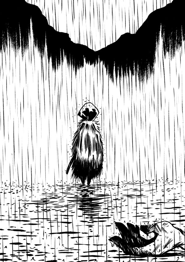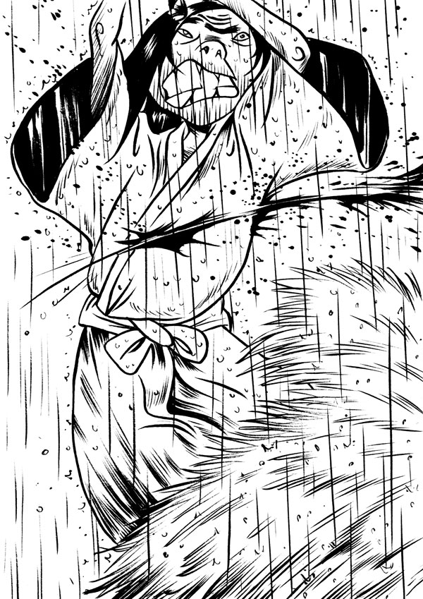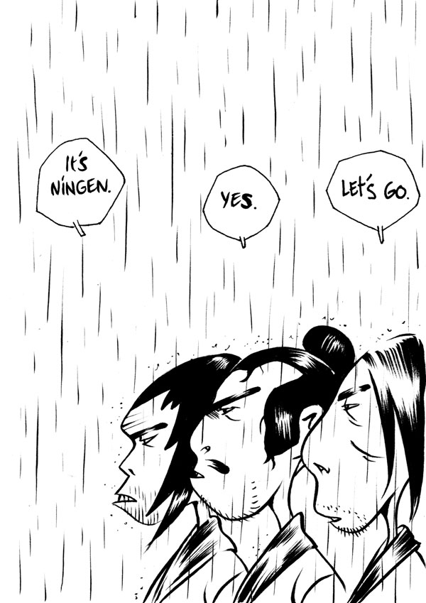 J. P. Kalonji wields a clean, street-informed style to deliver a tale that glistens with blood and drama, yet is ultimately uplifting. Nearly four hundred pages long, this graphic novel employs full-page panels to tell the story of an Edo-era swordsman’s quest for survival and enlightenment. When Ningen leaves his dojo at the request of his master -- to travel the world and grow as a swordsman -- he embarks on a journey that becomes a metaphor for the cycle of life and every human’s possibility for spiritual growth.