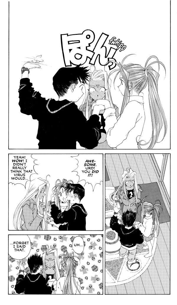 Ever since a cosmic phone call brought the literal young goddess Belldandy into college student Keiichi's residence, his personal life has been turned upside down, sideways, and sometimes even into strange dimensions!