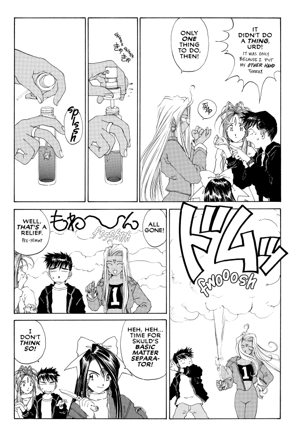 After epic mishaps such as Belldandy and Keiichi's hands becoming unable to part, or Skuld's robot Banpei falling in love, what harm could the arrival of a cute young boy at the temple do to its residents . . . the earth . . . the universe? They say when disaster strikes, time seems to slow down . . . The problem is, it's slowing down for everybody . . . for real! Plus a message from creator Kosuke Fujishima, and your fan art and letters!