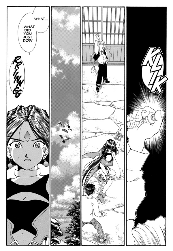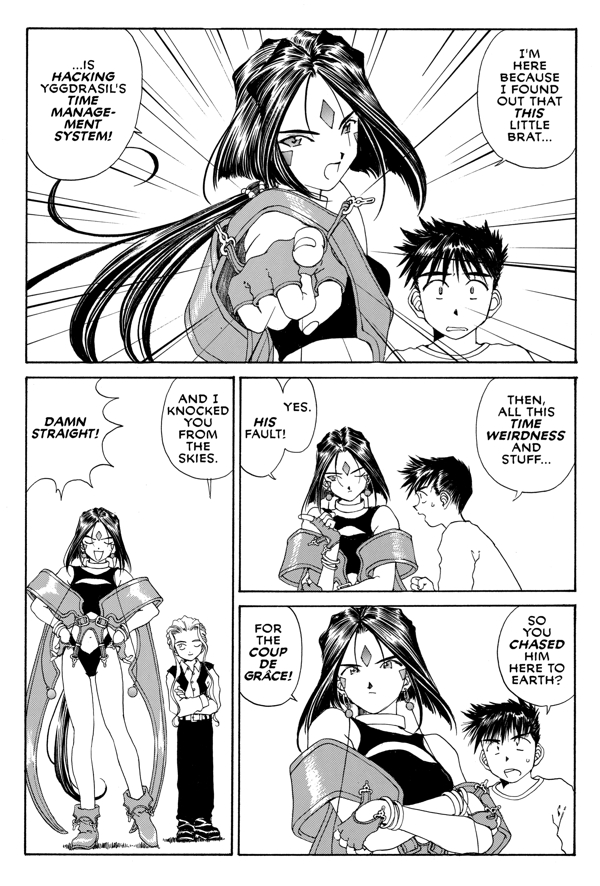Ever since a cosmic phone call brought the literal young goddess Belldandy into college student Keiichi's residence, his personal life has been turned upside down, sideways, and sometimes even into strange dimensions!