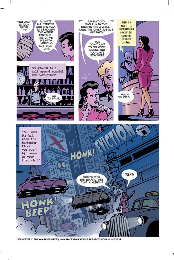 The psychetecture upon which Radiant City was built is driving its residents insane, and only Mister X can help! If that wasn’t enough, a government coup has thrust Radiant City into turmoil, initiating a countdown that could embroil everyone Mister X holds dear in a deadly new conflict! This volume collects Mister X: Eviction #1-#3, Mister X: Hard Candy, and the rarely seen short story Mister X: The Vanishing Breed.