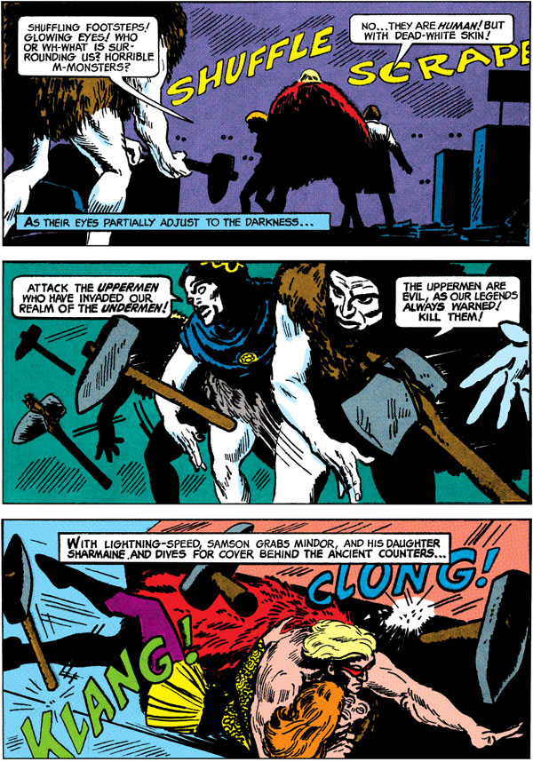With fantastic beasts, savage survivors of a nuclear war, and imaginative artwork by Frank Thorne and Jack Sparling, Mighty Samson Archives volume 2 hits the ground running with nonstop post--apocalyptic adventure and sci--fi fun. Created by prolific writer Otto Binder and artistic titan Frank Thorne, the Mighty Samson's comic--book career lasted for only thirty--two issues, but Dark Horse is bringing the exploits of this daring, one--eyed adventurer to modern audiences in a series of elegant hardcovers! Born into a peaceful yet primitive tribe of N'Yark, in a radioactive future America, Samson learns that he's just as strong and resilient as some of the most vicious, mutated creatures that threaten his tribe. A mutant himself, Samson still vows to protect his defenseless human kin from the dangers around them--and his motto becomes, "To protect the weak from the powerful, the good from the evil!"