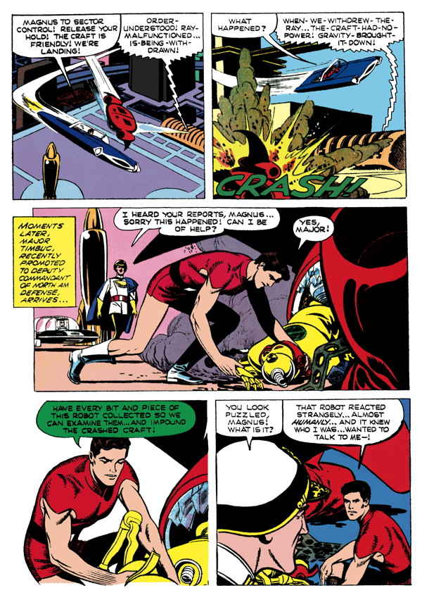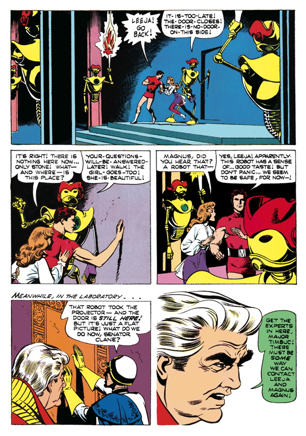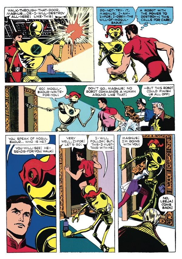 Comics legend Russ Manning’s artistic flair reaches new heights in this final volume, as he pits the intrepid robot slayer Magnus against a seemingly endless cadre of wildly imaginative metal menaces. The classic sci-fi hero kicks, punches, and trademark chops his way through an army of robots to keep his futuristic world safe! Collects 1960s-era Magnus, Robot Fighter issues #15–#21.