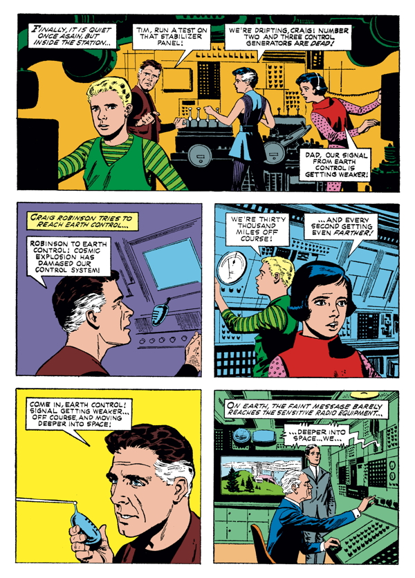 “Come in, Earth Control! This is the Robinsons. A cosmic explosion has damaged our control system and we’re moving deeper into space! This is Space Station One. Do you copy?”