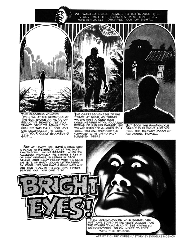 Eerie Archives Volume 9 collects issues #42-#46 of the original Eerie magazine run. This volume features classic stories from comic-book legends Richard Corben, Doug Moench, Reed Crandall, and Paul Neary, color covers by Luis Dominguez and Sanjulian, as well as mind-melting contributions from Eerie regulars Tom Sutton, Steve Skeates, Esteban Maroto, and Jerry Grandenetti. Whether traveling through space in "Someday" or trapped in a mad scientist's greenhouse in "The Root of Evil," you'll be mesmerized by these timeless tales of horror! This collection also reprints all color stories, letters pages, and articles from the original magazines and features a new foreword by Timothy Truman (modern Creepy, King Conan).