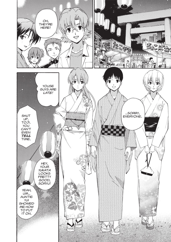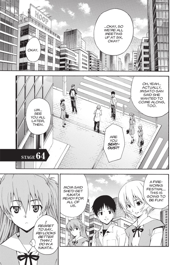 Of all the unbelievable things that have happened, perhaps the most shocking is that Yui has finally managed to dig Kyoko out from her laboratory to join the crew on a forest retreat! Asuka and Shinji are bound to get close by accident, but wait--are they actually getting closer . . . ? Then it's back to target training for the students . . . but this time the arena is their school, and this time the targets are shooting back!