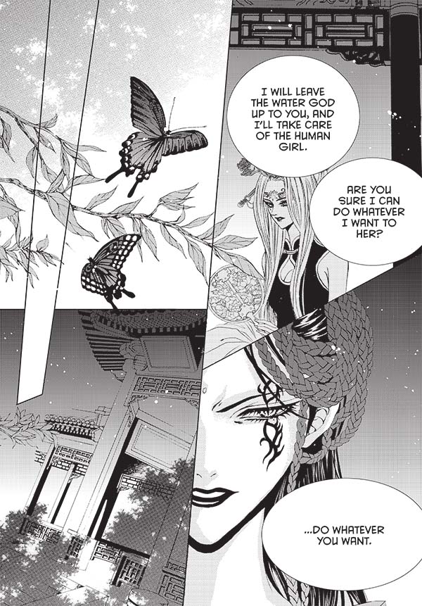 Mura—the goddess who’s been trying to separate Habaek and his human bride Soah—forces Habaek into a showdown on Cheong-Yo Mountain, where she’s most powerful. As a civil war erupts in the realms of the gods, the Emperor puts his own devious plan in motion to hurt Habaek and those he loves.