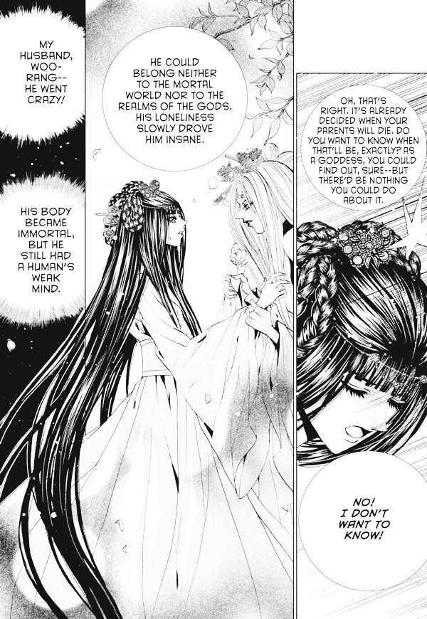A bitter goddess tempts Mui to abandon his godhood and spend a short but happy life with Soah as a human! But a goddess’s gift is never without conditions! Mi-Kyung Yun delivers another sumptuous installment of the hit manhwa series, filled with romance and intrigue and steeped in Korean mythology.