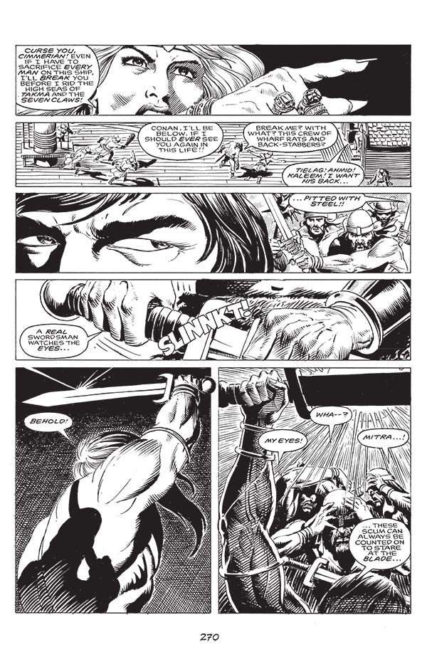As the barbarian mercenary Conan roams the lands of Hyboria, selling his sword to the highest bidder, the siren lure of wine, women, and treasure is often more dangerous than any armed adversary. While Conan’s skills are more than a match for any warrior, avarice is an enemy against which a blade is of little use! Collects Marvel’s Savage Sword of Conan the Barbarian #131–#140.