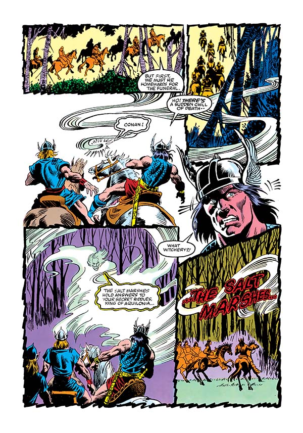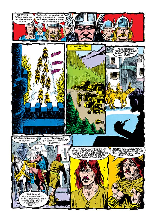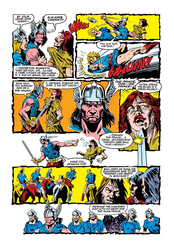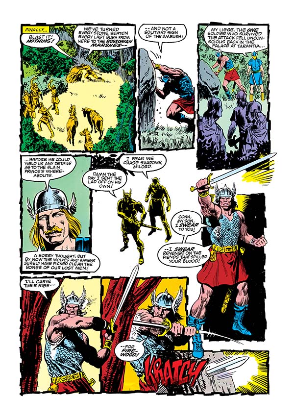 Blinded by grief and rage, Conan the king has let matters of state fall by the wayside as he mourns the apparent death of his son and heir, Conn. The barbarian king’s erratic behavior and the void of leadership is troubling, but where some see a kingdom on the brink of chaos, others see an opportunity to seize the moment and pull the reins of power from the preoccupied monarch’s hands. Dead hands, that is! Collects Conan the King #21-#25.