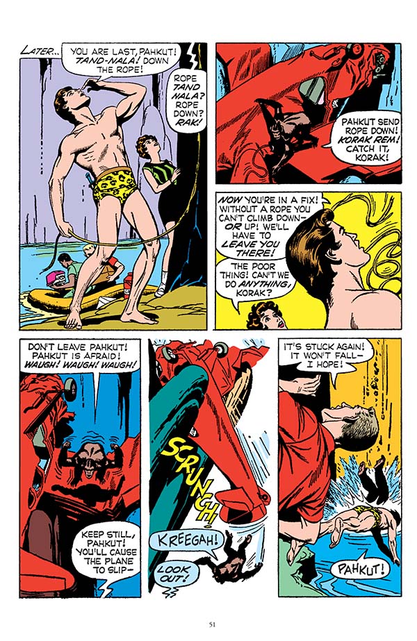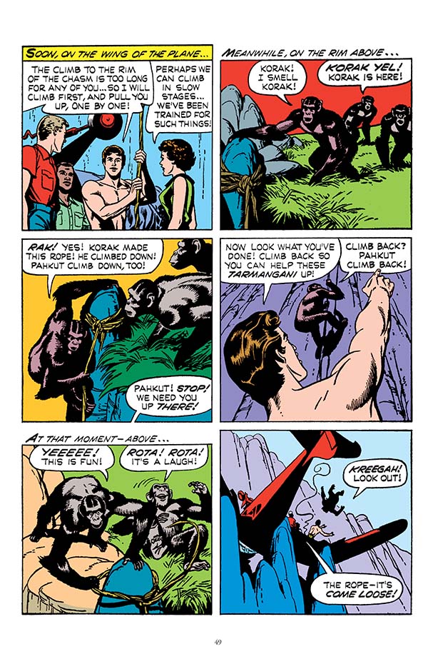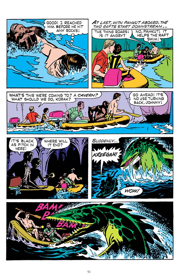 Stepping out from Tarzan’s shadow and with all of Africa his to explore, Korak—“the killer”—and his chimpanzee sidekick Pahkut make new friends and enemies, embark on daring rescues, and fight dinosaurs, crocodile men, subterranean raiders, and even aliens! Don’t miss this thrilling conclusion! Collects Korak, Son of Tarzan #7–#11 and #21 from Gold Key!