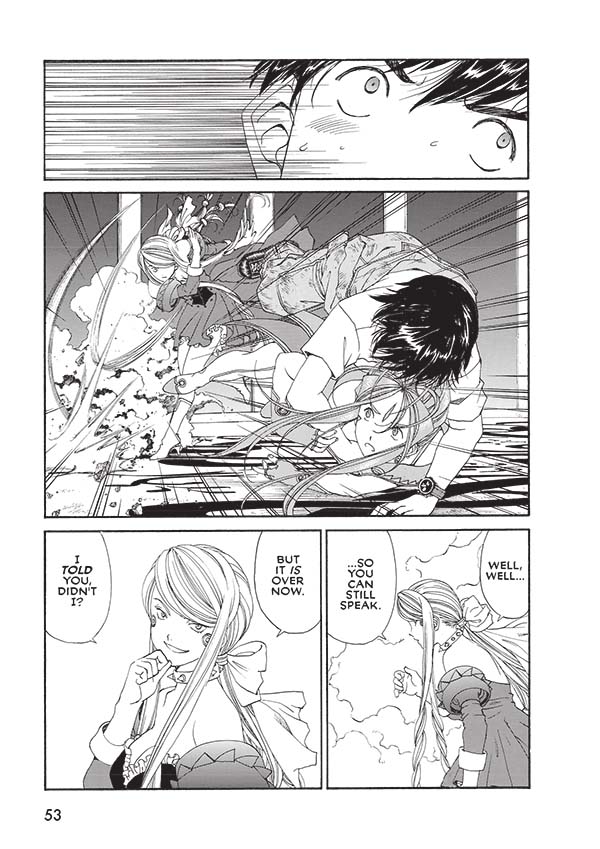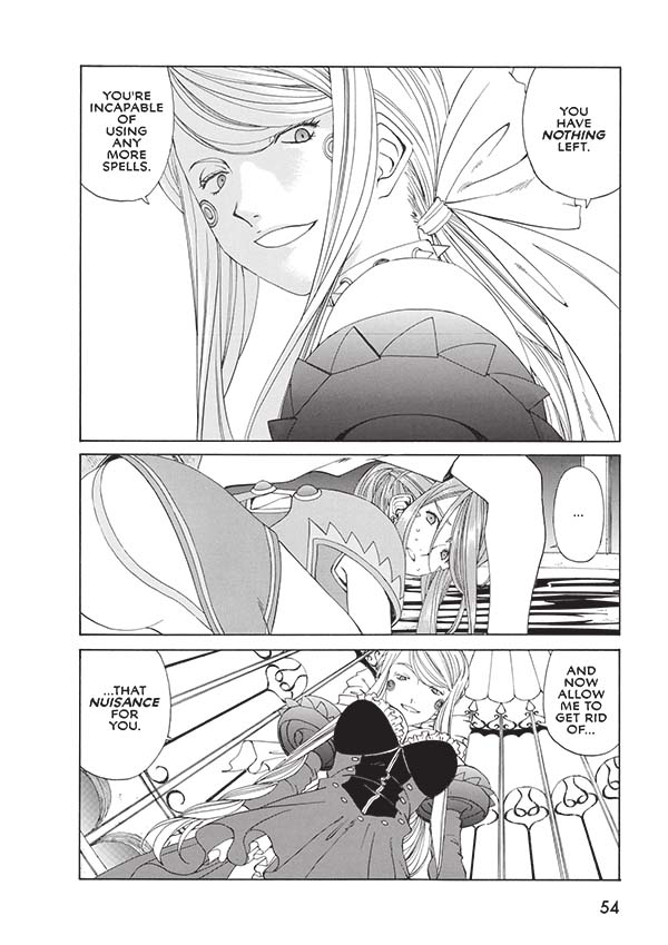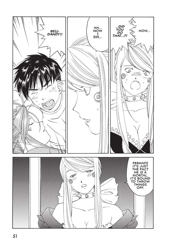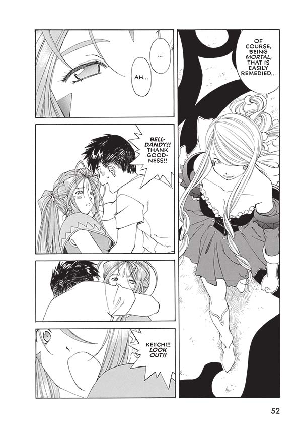 As Urd summons her demonic potential to defeat the machine menacing her sister, Skuld stands by with a holdout bomb should things go out of control . . . but they may already be out of control, as Belldandy is forced to play her own last, unexpected card . . . offering Keiichi the chance to cancel their contract!
