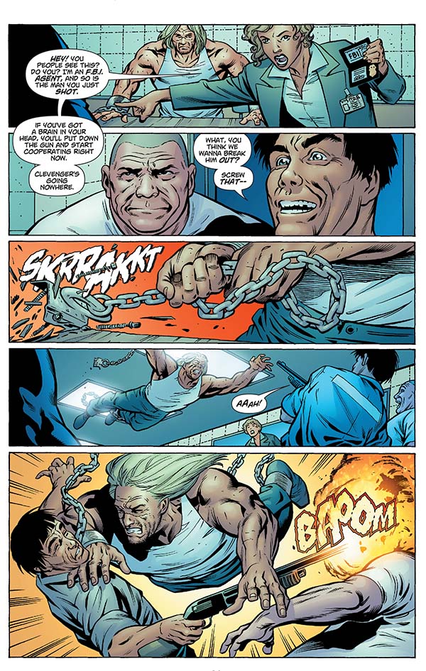 Superpowered criminals don’t stand a chance when the FBI unleashes the bloodhound! Ex-cop Travis Clevenger was the most effective tracker of superhumans in the country, until he was sentenced to twenty years in a maximum-security prison for killing his partner. Offered a reduced sentence in exchange for helping the FBI capture a superpowered serial killer, Clevenger agrees when he learns that the killer’s next intended victim is his dead partner’s daughter. Can the disgraced hero redeem himself, and can the FBI control him once they’ve let him loose? Collecting the acclaimed DC series from Dan Jolley, Leonard Kirk, and Robin Riggs!