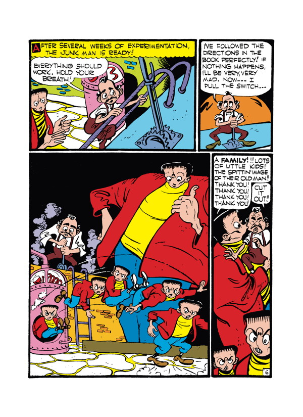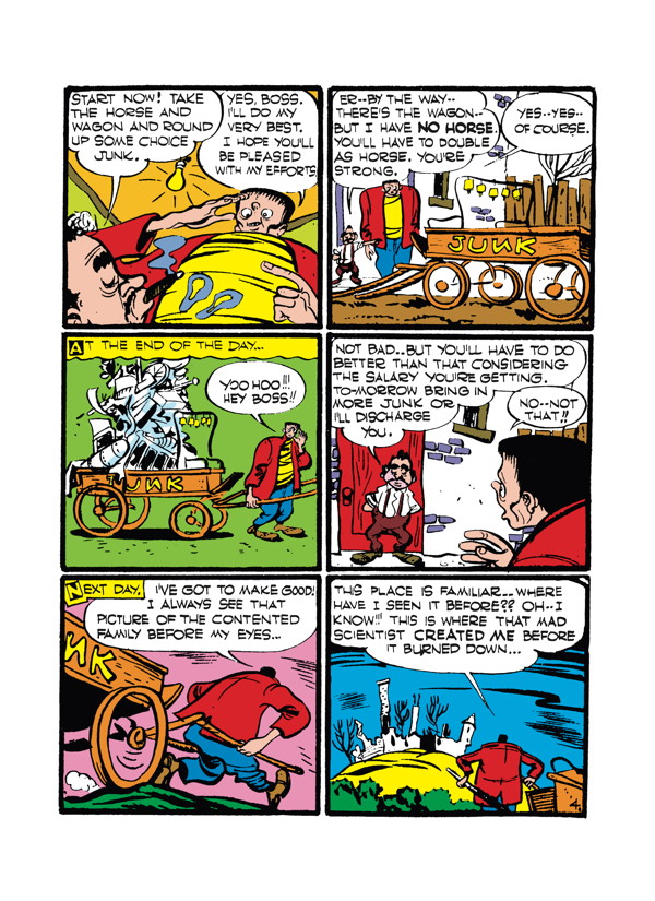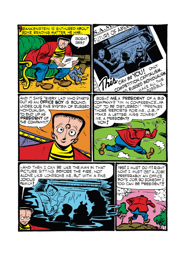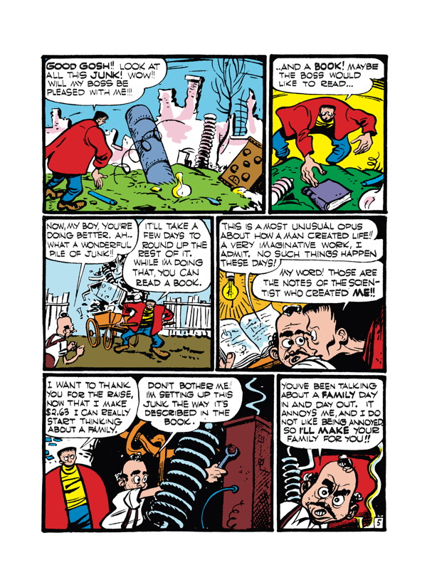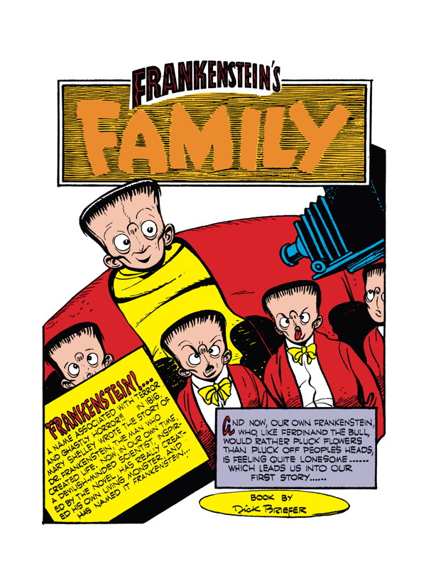 Frankenstein: The Mad Science of Dick Briefer reanimates a most unusual Frankenstein monster, one “who, like Ferdinand the Bull, would rather pluck flowers than pluck off people’s heads.” Briefer’s Frankenstein mixes screwball comedy with canny observation of postwar America into a creation that would shock the original monster senseless! It’s alive! Collects Frankenstein #1–#6 (Prize Publications, 1945–1946).