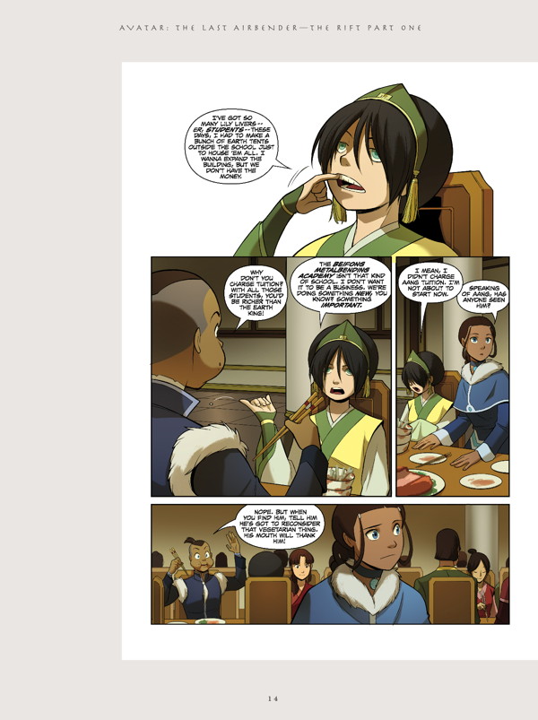 Avatar Aang and friends honor an Air Nomad holiday that hasnt been celebrated in over one hundred years, but when cryptic visits from the spirit of Avatar Yangchen lead Aang to a refinery operating on land sacred to the Airbenders, they soon find themselves in peril as a dangerously powerful ancient spirit awakens with vengeance and destruction on its mind! Collects The Rift parts 13.