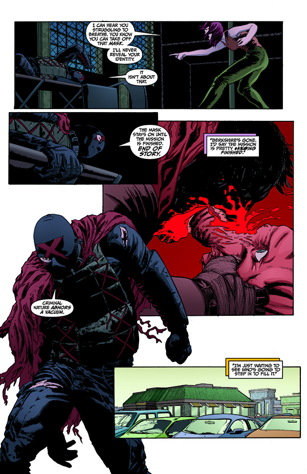 * Swierczynski’s treatment of the titular psychopathic vigilante takes a surprising turn.