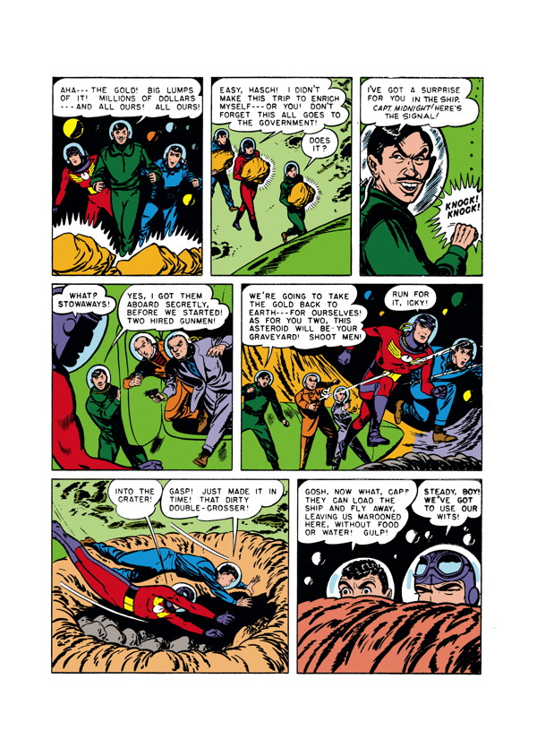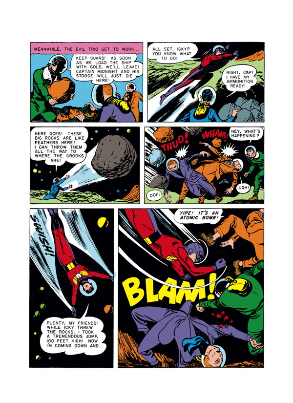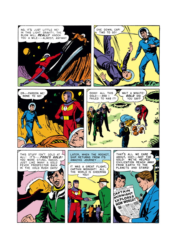 Captain Jim Albright, inventor and ex-Army pilot, maintains a secret identity as Captain Midnight, flying superhero and defender of justice! In this second archival volume, featuring stories selected from the original 1940s Fawcett comics, Captain Midnight and his sidekick Ichabod Mudd explore new planets and defend the earth from aliens, including moon creatures, purple pirates, and the bizarre and villainous Xog! Collects selected stories from issues #48, #50, #52-#56, #58-#60, #62, #64, and #66.