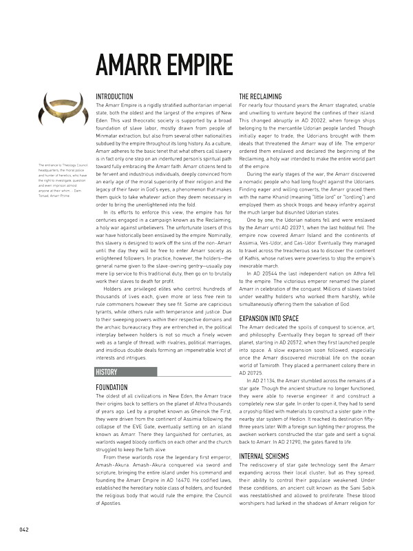 EVE: Source is your comprehensive source book and visual guide to the gargantuan universe experienced in EVE Online and DUST 514! Developed in close collaboration with the EVE and DUST 514 creative teams, this beautiful 184-page, full-color hardcover will immerse readers in the history and lore of EVE through stunning artwork and never-before-released material detailing the settings, stories, races, and factions of the EVE universe.