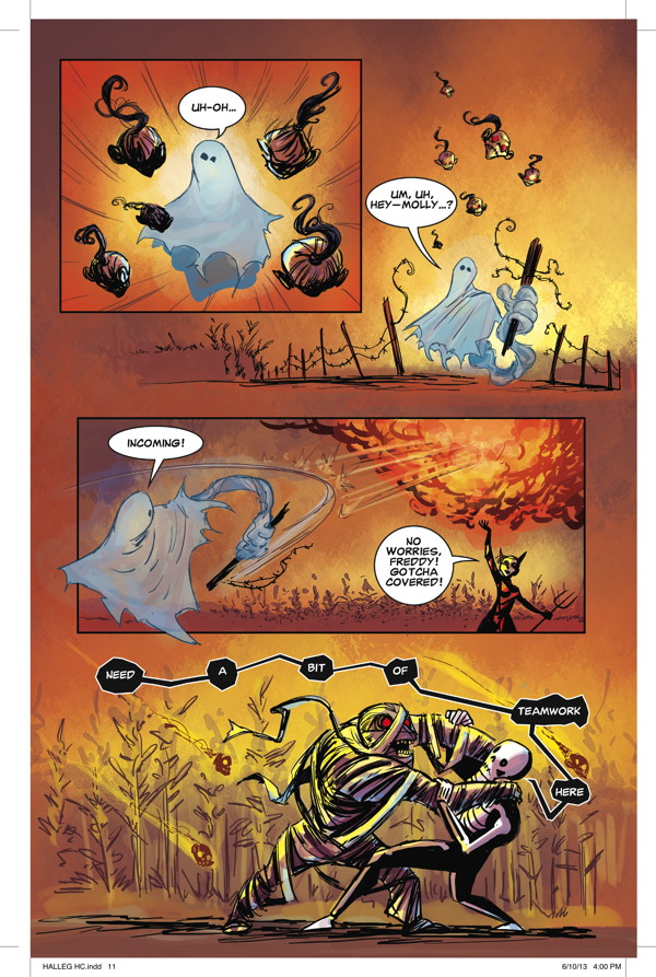 A team of extraordinary guardians from a place of eternal October protect Woodland from supernatural menacesbut can the Skeleton, the Witch, the Ghost, and the Devil defend the sleepy rural town from a full-on UFO invasion? A pulpy, all-ages adventure that stirs up breezy Halloween memories!