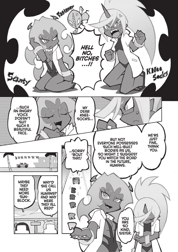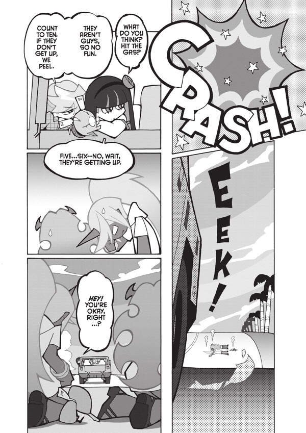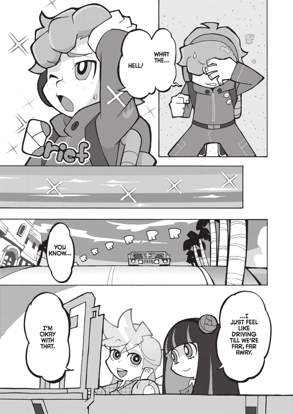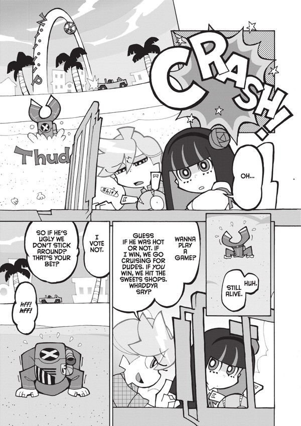 Panty and Stocking are cute but highly dangerous angels, booted out of heaven for wrath, sloth, lust, envy, avarice, and gluttony (at least pride wasn’t high on their list). Now residing among the sinners of Daten City, the angels try to earn their way back into grace by exorcising evil at the behest of their questionable preacher boss, the Afro-bedecked Garterbelt!