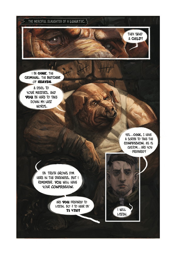 In a dark, oppressive future, pig-men work tirelessly as the slaves of human masters, feeding a society they cannot fathom. When Oink realizes that the dogma being forced on them is all lies, he undertakes a path of revenge and revelation.