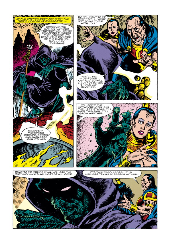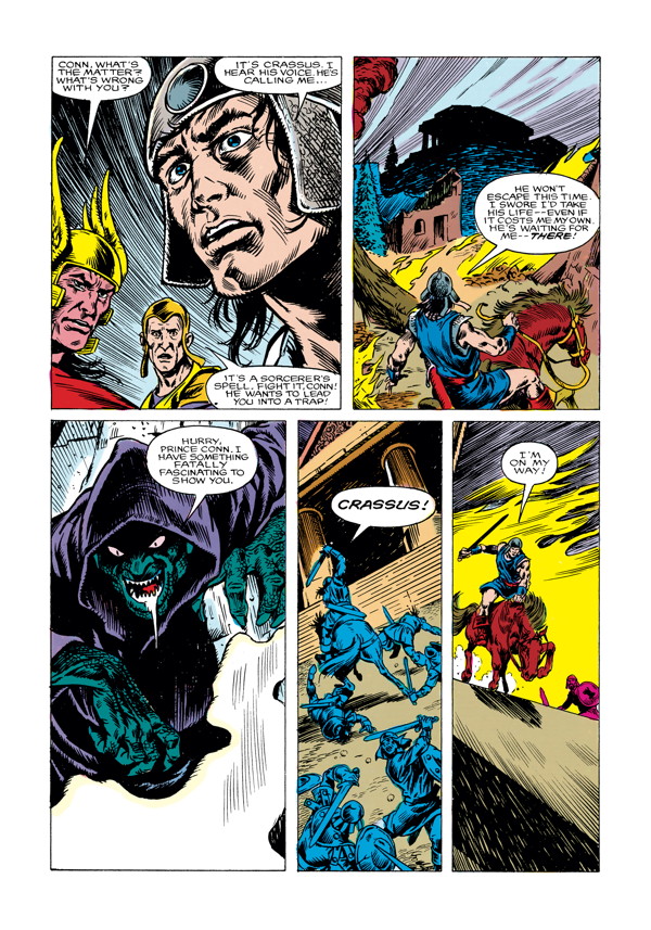 Conan and his allies prepare to crush the enemy coalition that nearly cost Conan his kingdom. With Conan’s daughter about to marry, the malefic sorcerer Crassus readies his own wedding gift—Conan’s destruction at the hands of his own son! Collects Marvel’s Conan the King #41–#45.