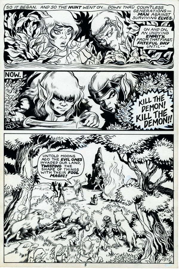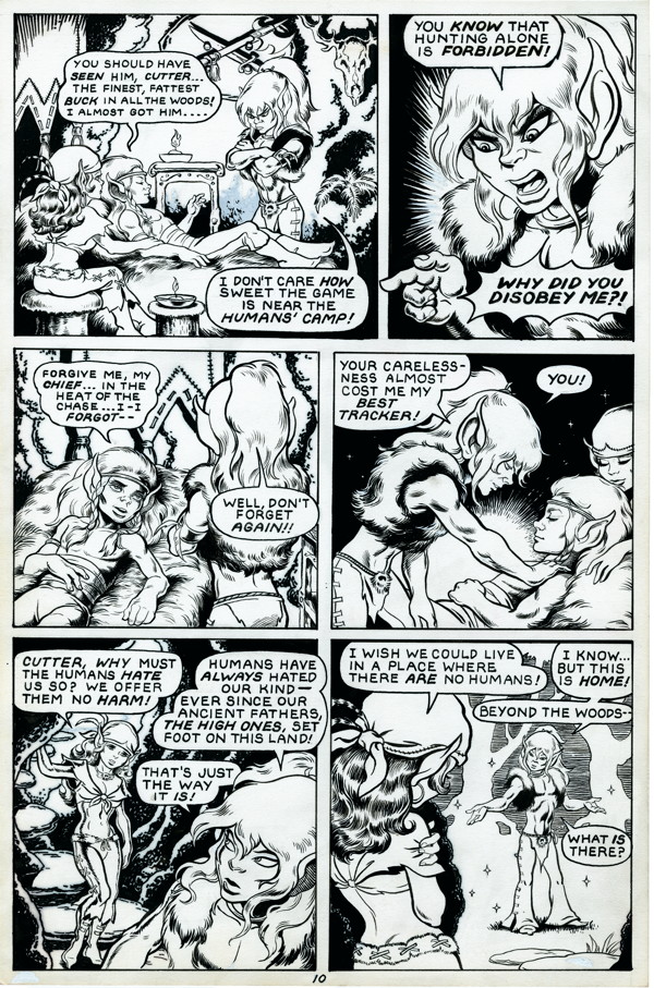 ElfQuest continues to capture the imaginations of readers of all ages, as Chief Cutter and the Wolfriders battle savage humans, forge lasting alliances, and discover strange new lands in this ultimate fantasy adventure! This oversized gallery edition collects the first five issues of The Original Quest, “Fire and Flight.” Each page is carefully scanned from Wendy’s original art to capture every stroke and detail.