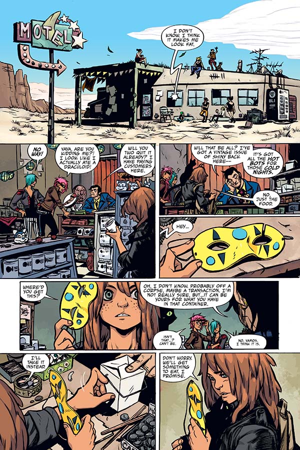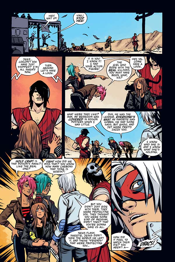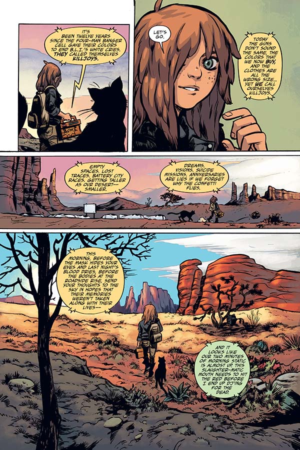 Years ago, the Killjoys fought against the tyrannical megacorporation Better Living Industries, costing them their lives, save for one—the mysterious Girl. Today, the followers of the original Killjoys languish in the Desert while BLI systematically strips citizens of their individuality. As the fight for freedom fades, it’s left to the Girl to take up the mantle and bring down the fearsome BLI! Collects The True Lives of the Fabulous Killjoys #1–#6 and “Dead Satellites” from Free Comic Book Day 2013.