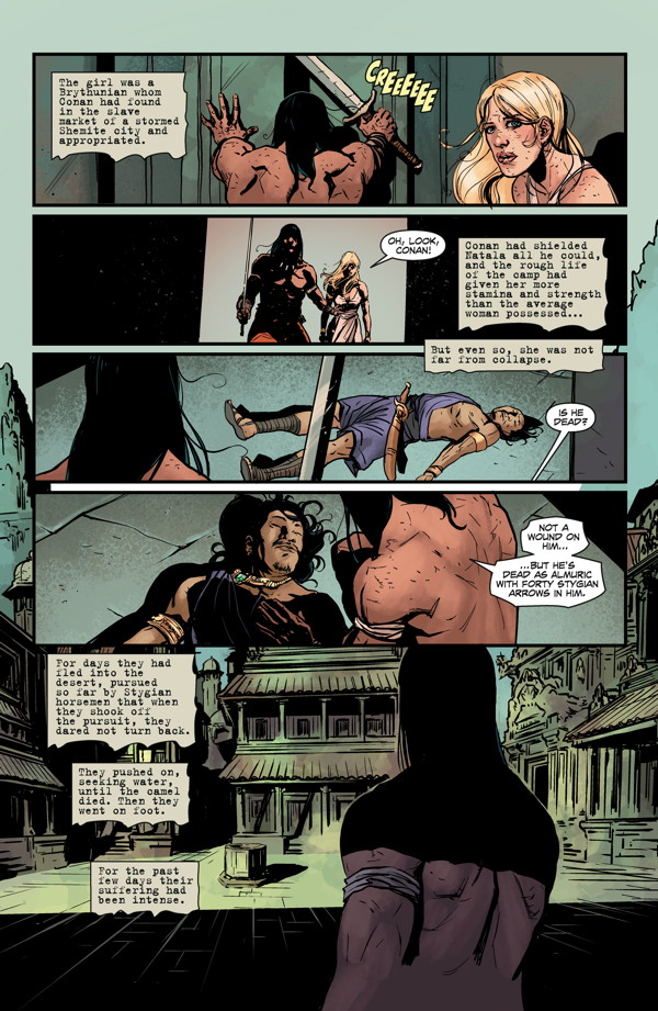 Conan and the former slave girl Natala enter the city of Xuthal, where a mysterious horror waits in the shadows! Then, Conan fights a deadly duel as Janissa the Widowmaker makes her triumphant return!