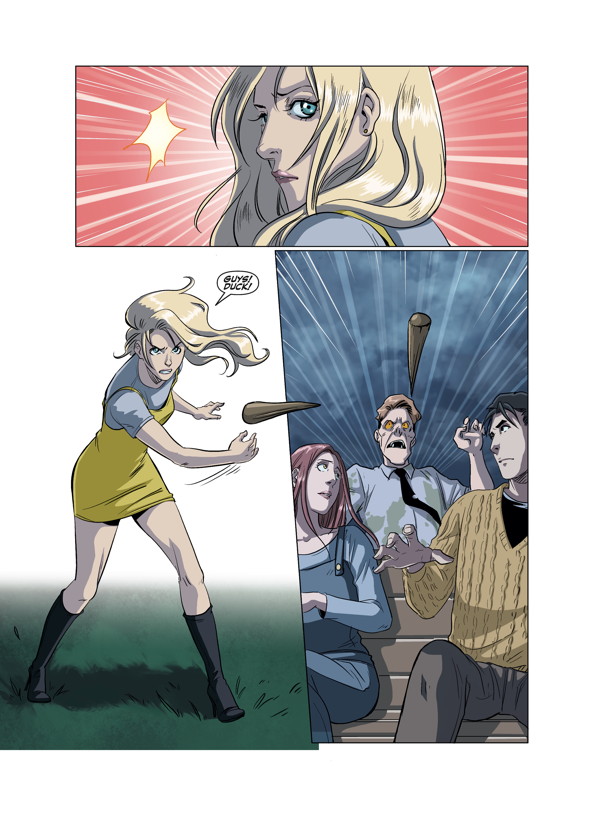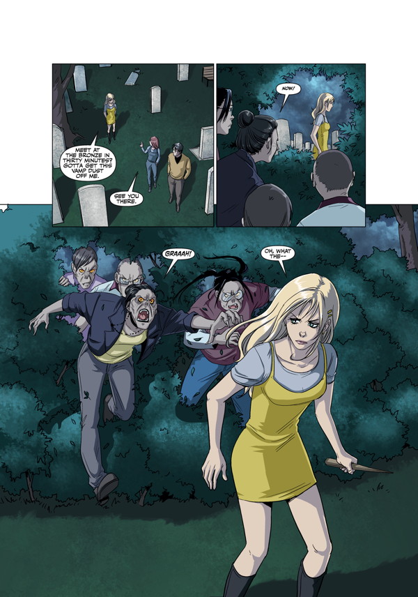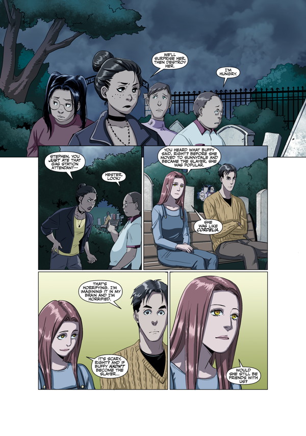 Buffy the Vampire Slayer is back in classic action in a tale set during her first year at Sunnydale High School! Burdened with the stress of a new school, making new friends, and sleepless nights spent slaying the undead, Buffy becomes the target of a group of nerdy vampires hoping to climb the vampire social ladder.