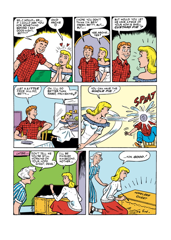 Americas typical teen is back to get into way more than a typical share of trouble, and he's brought all his pals, as the voracious Jughead and the lovely Betty and Veronica get their own hilarious spotlight stories! The whole gang's at it again with over two hundred pages of classic, gut-busting antics! Collecting Archie Comics #35#36, Pep Comics #70#72, and Laugh Comics #29#31!