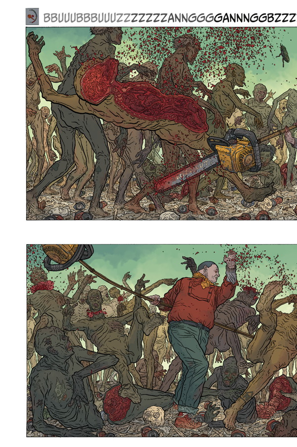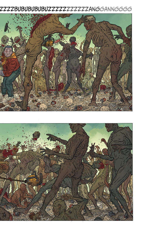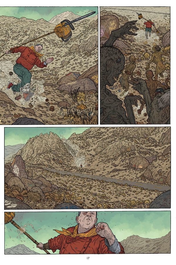 The action never lets up as a chainsaw of events pits the comic world’s favorite Shaolin Cowboy against a legion of gourmets from the fourth level of hell, intent on turning America’s finest youth into an endless Shemp buffet.