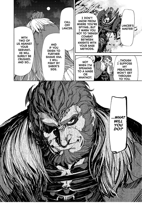 With the Fourth Holy Grail War underway, seven magi and their summoned heroes from history meet and battle to the death to claim the Grail and have their wishes granted. Servants Berserker and Caster reveal the horror of how their masters summoned them, and Kariya’s disturbing origins are revealed.