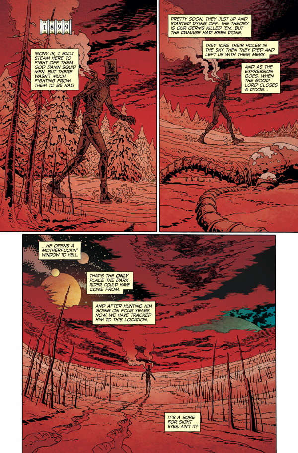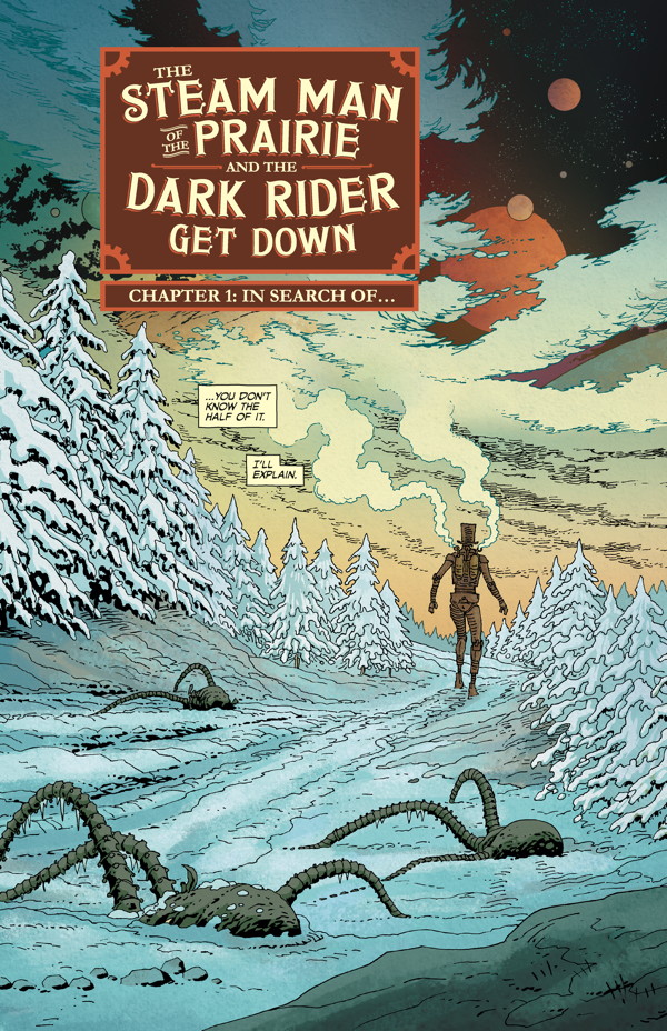 Enormous steam-powered robots march across the Great Plains of the old American West, protecting the populace against invading aliens and monsters! The Steam Man and his operators seem to have their task well in hand, until a crazed and powerful vampire comes to town intent on bringing forth the apocalypse! Collects The Steam Man #1–#5.