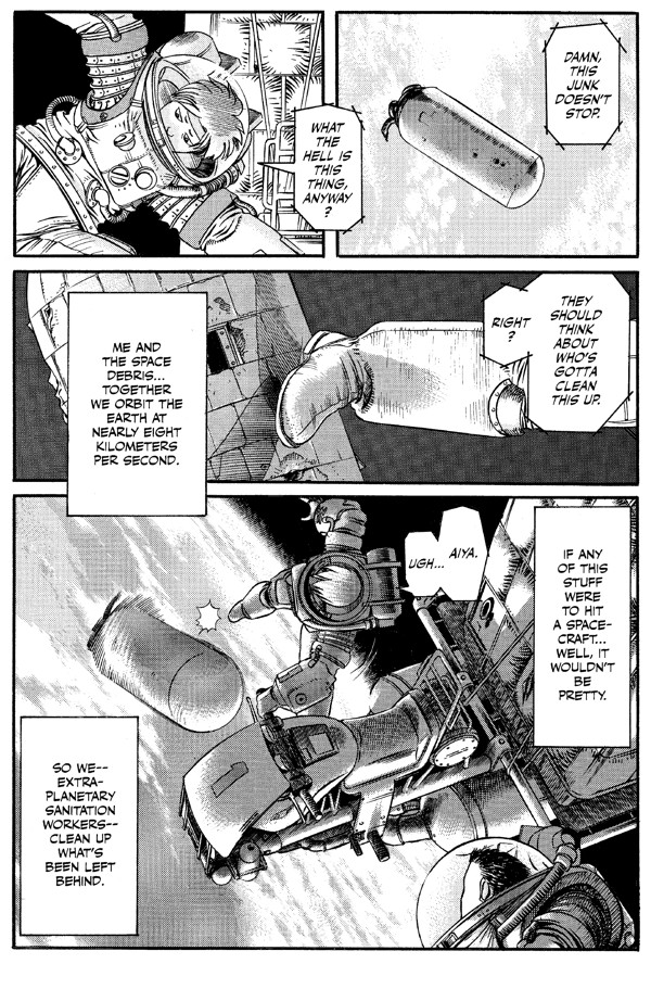 In the 2070s, increased interplanetary travel has led to crisis-level amounts of dangerous space debris, and someone has to clean it up. Planetes follows the space-garbage crew of aspiring explorer Hachimaki, mourning Yuri, and secretive Fee, collected in two omnibus editions, printed from the original files and complete with bonus color pages!