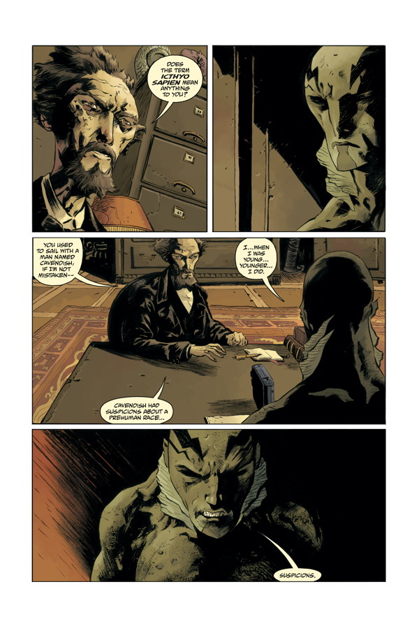 Abe Sapien’s “Dark and Terrible” story reaches its finale, and the answers Abe uncovers about his own existence reveal some of the biggest secrets of the Hellboy saga.