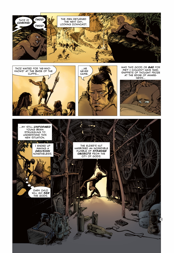 On a post-apocalyptic Earth, where mankind has regressed to a handful of primitive tribes hunting and foraging for a meager, oppressed existence, a lone black child, shunned by other members of his tribe, sets out on an epic journey to what used to be known as New York, land of the gods! Written by Stefan Wul, author of cult favorite Fantastic Planet, illustrated by acclaimed French comics artist Olivier Vatine, this unusual hero's journey is a memorable examination of a child's compassion--and the human race's cruelty.