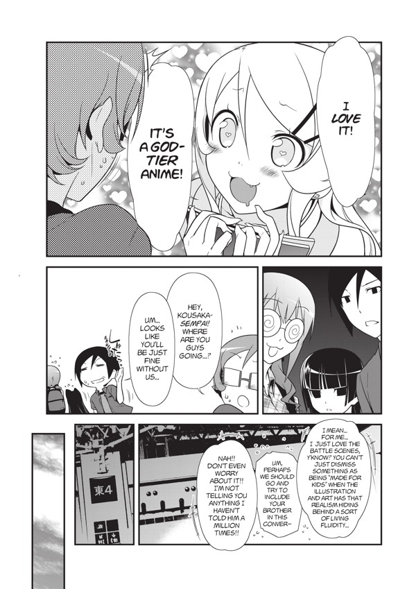 It’s summer in Japan, and Kirino is back, which can mean only one thing . . . everyone’s second trip together to Comike, the world’s largest fan convention. Kuroneko’s got a stack of her doujinshi (self-published comics) to sell, but who should they all bump into there but the lovely, talented male model Kouki Mikagami . . . who’s been in a photo shoot with Kirino . . . ?