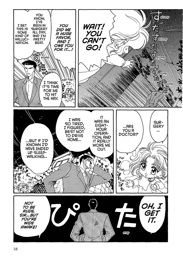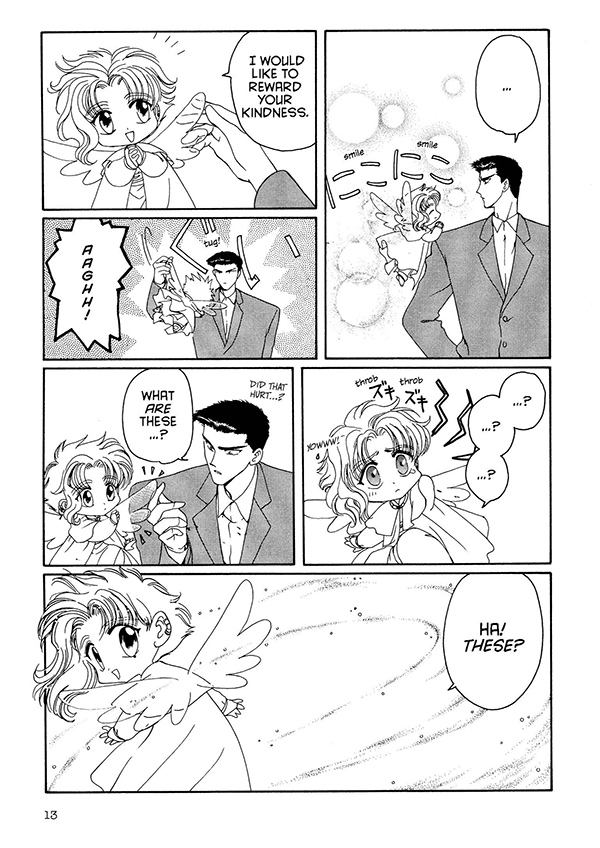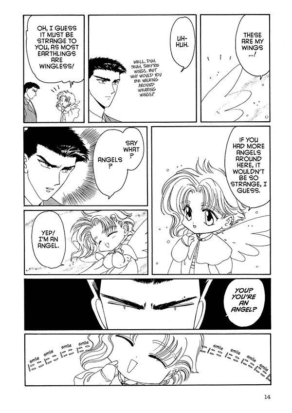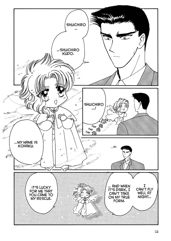 Walking home from work one day, handsome young doctor Shuichiro notices an adorable little thing trapped in a tree . . . not a cat, but an angel, Kohaku. In gratitude for rescuing it, Kohaku offers to grant Shuichiro a wishbut to the angels surprise, Shuichiro says no thanks . . . everything in his life is great! But little Kohaku isnt going to give up that easily, and moves in with Shuichiro. Soon theyre joined by the demons Koryuu and Kokuyo, and the household becomes an earthly haven for love thats been lostand a sanctuary for love that cant be run from . . .