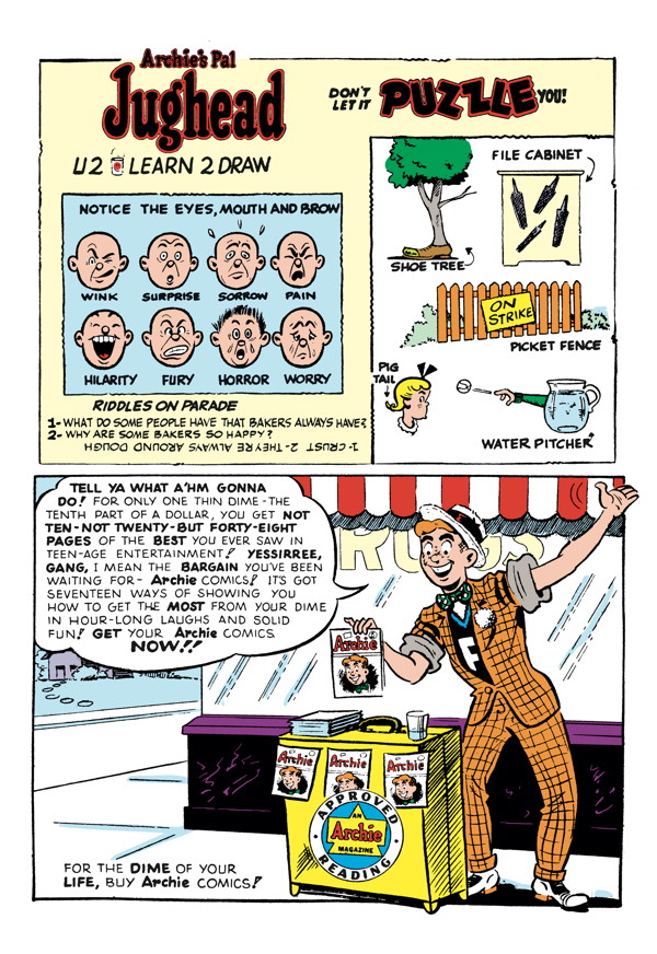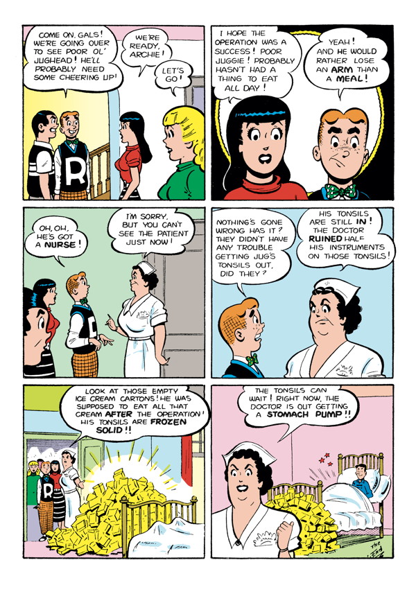 Hungry for more? Jughead gets into more scrapes, rebuffs more cute girls, and eats more hamburgers than anyone! These classic stories feature artwork from Bob Montana and Bill Vigoda and highlight the weirder antics of Jughead, Archie, Betty, Veronica, and the rest of the gang. Collecting Archie's Pal Jughead #9#16.