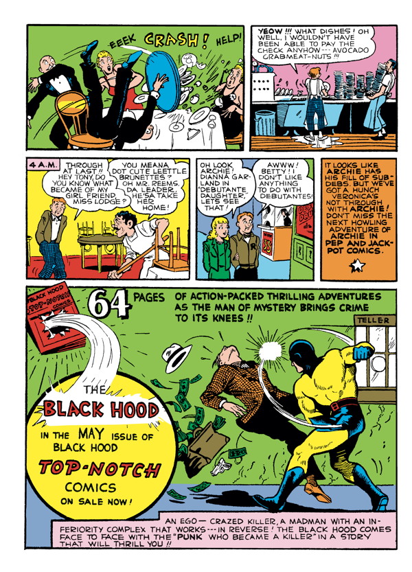 Dark Horse and Archie Comic Publications present the archive library series everyones talking about-now in bargain-priced trade paperback! The earliest, hardest-to-find stories in the history of Archie comics can now be read and enjoyed in full color, from Archie's budding romances with Betty and Veronica to his antics at Riverdale High. This volume collects all Archie stories from Pep Comics #22#38, Jackpot Comics #4#8, and Archie Comics #1#2.