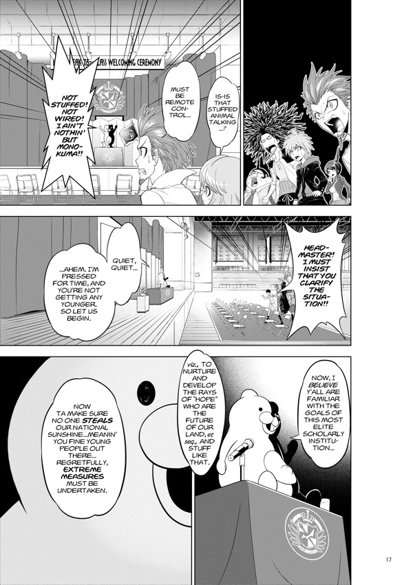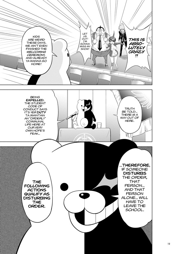 Each year, the elite Hopes Peak Academy selects only the most gifted and talented students to enroll . . . plus one ordinary student, chosen by lottery. Makoto Naegi was that lucky personor so he thought! When he shows up for class, he finds the elite students are a bizarre cast of oddballs under the ruthless authority of a robot teddy bear principal, Monokuma. The bear lays down the school rules: the only way out of Hopes Peak is to not only murder another student . . . but get away with it, as every murder is followed by a tribunal where the surviving students cross-examine each other!