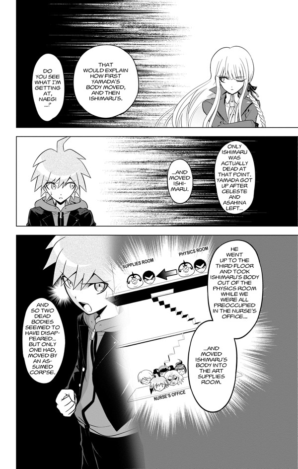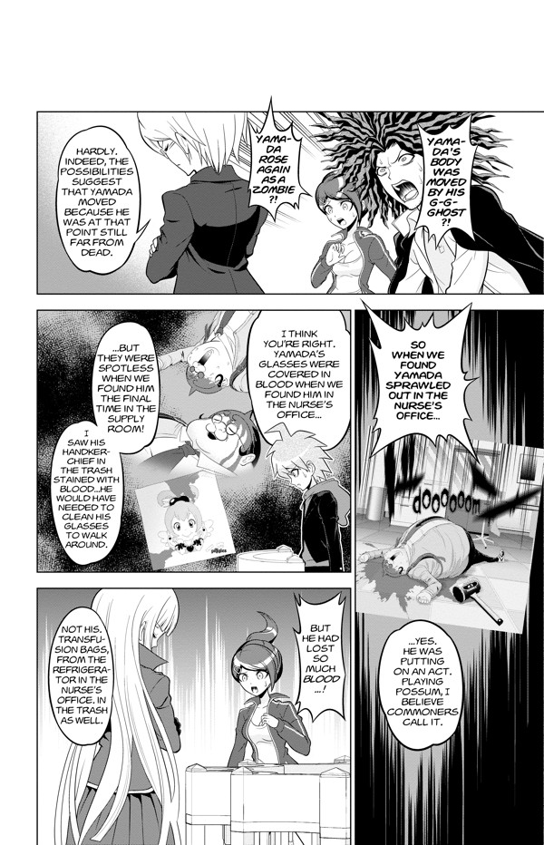 The life-or-death courtroom game continues at Hopes Peak Academy as Makoto and Kyoko work together to try to prove Yasuhiros innocence and convict Celestia in the latest round of class trials! And Makoto has learned in his investigations that one of his fellow students is being forced by Monokuma to spy on them. Should he reveal this secret to the othersor wait for the spy to make what could be a very drastic move?
