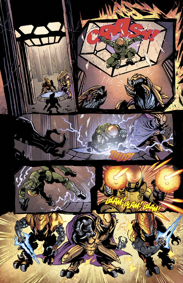 This action-packed original graphic novel contains all-new Halo® stories from some of the comic industry’s best—Jonathan Wayshak, Eric Nguyen, Alex Irvine, Vasilis Lolos, Kody Chamberlain, Dave Crosland, John Jackson Miller, Jonathan Goff, Simon Roy, and Halo: Escalation writer Duffy Boudreau—as well as 343 Industries’ own franchise development director, Frank O’Connor, and franchise producer, Tyler Jeffers!
