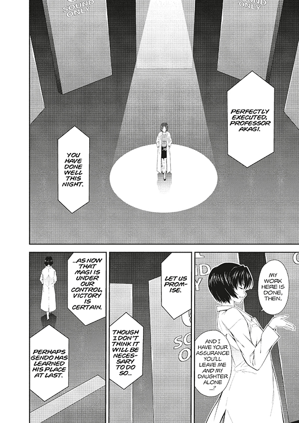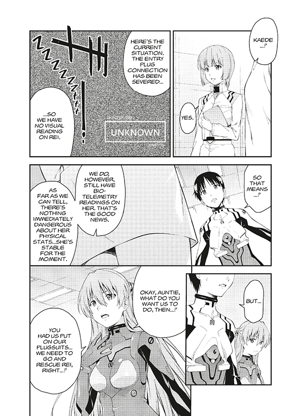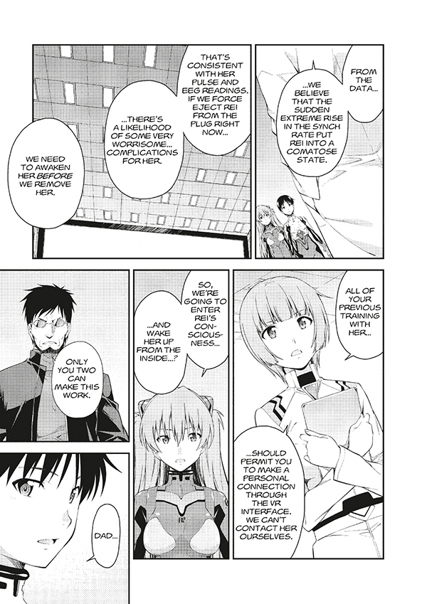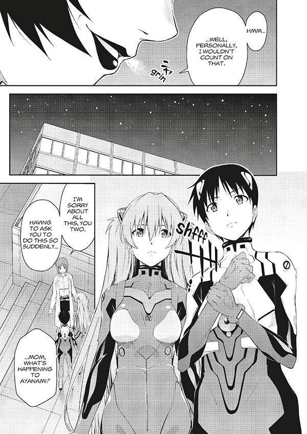 To all the children, congratulations! In search of the vanished Rei, Asuka and Shinji at last confront the opponents of everything their parents have been working towards . . . the monolithic masterminds of SEELE! But when Reis memories are wiped clean, will the two of them find the right place once more between love and friendship . . .?
