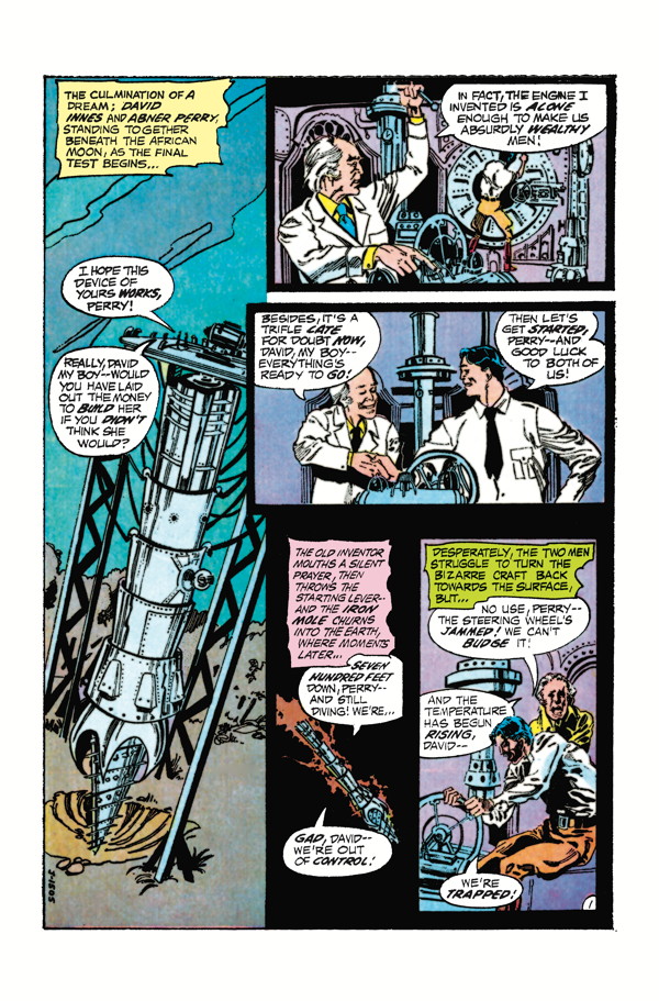 In a story originally conceived of by Edgar Rice Burroughs, a group of explorers find a land inhabited by prehistoric reptiles, strange creatures, and beings enacting dark rituals. But most importantly, they discover the beautiful Dian, queen of Pellucidar, who captures their hearts and leads them on a wild adventure to aid her and win her trust. This collects selected stories previously published in Korak, Son of Tarzan #1 and Weird Worlds #1–#7 from DC Comics.